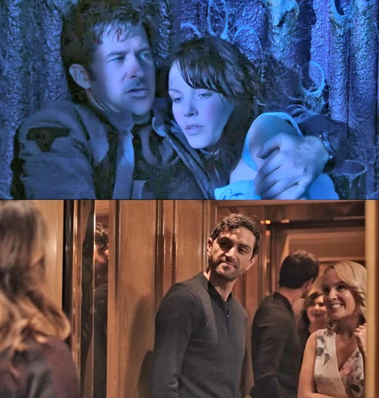 Joe Flanigan as John Sheppard and Jenn Bird as Neera – Stargate Atlantis 211 — Luke Camelleri as Frank Bianchi and Jenn Bird as Felicity – Family Law 110 Published 15 April 2026 at 765 × 804 in Alien Invaders: Asha, Felicity, and Doctor Peterson (top) Joe Flanigan and Jenn Bird in STARGATE ATLANTIS (Episode 2.11) and Jenn Bird as Felicity on FAMILY LAW +